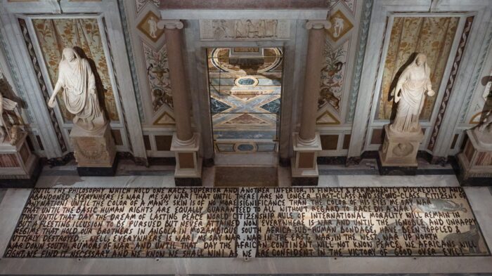 A Roma tre mostre o interventi espositivi un po’ speciali sanno parlare di culture africane, discriminazione e, si può dire?, di compassione, sanno dialogare con i luoghi con una gran cura dell’esito formale. Sono tre appuntamenti radicalmente diversi l’uno dall’altro eppure un filo li accomuna. Alla Galleria Borghese, alla Fondazione Pastificio Cerere nel quartiere di San Lorenzo, in via della Conciliazione a Città del Vaticano e in uno spazio monumentale ai suoi confini.