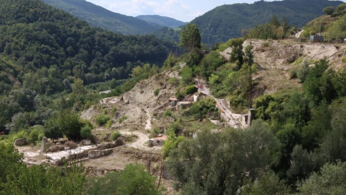 Veduta del nucleo storico di Arquata del Tronto distrutto nel 2016, agosto 2025. Foto Stefano Miliani