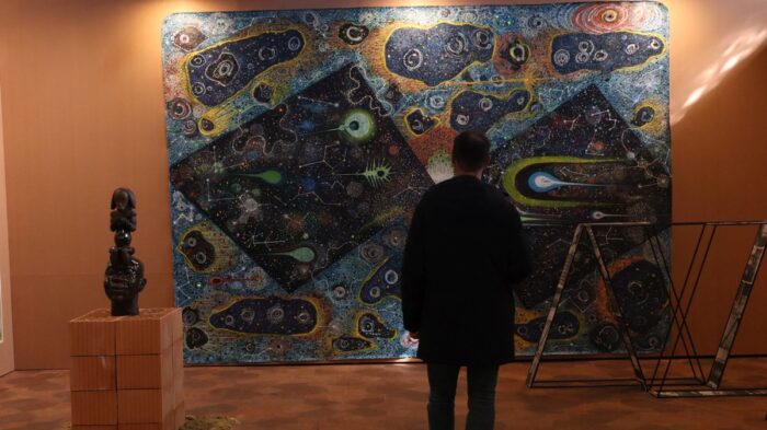L’ultima tappa di questo tracciato ci porta alla mostra nel Palazzo gotico di Piacenza, cui ha collaborato l’assessorato alla cultura del Comune. Fino a lunedì 4 maggio continua “Sguardi sull’Africa. Arte tradizionale e giovani voci, arte contemporanea e la Scuola di Casablanca”. Nel vastissimo salone antico i curatori Paolo Giglio e Samuele Menin hanno disposto 250 pezzi tra statue e maschere rituali, un corposo capitolo sulla pittura marocchina modernista, autori e autrici africani sia agli esordi sia già affermati. La mostra seleziona opere dalla Collezione Giglio di Paolo e Bruno Giglio e dalla Collezione54 di Rosario Bifulco.